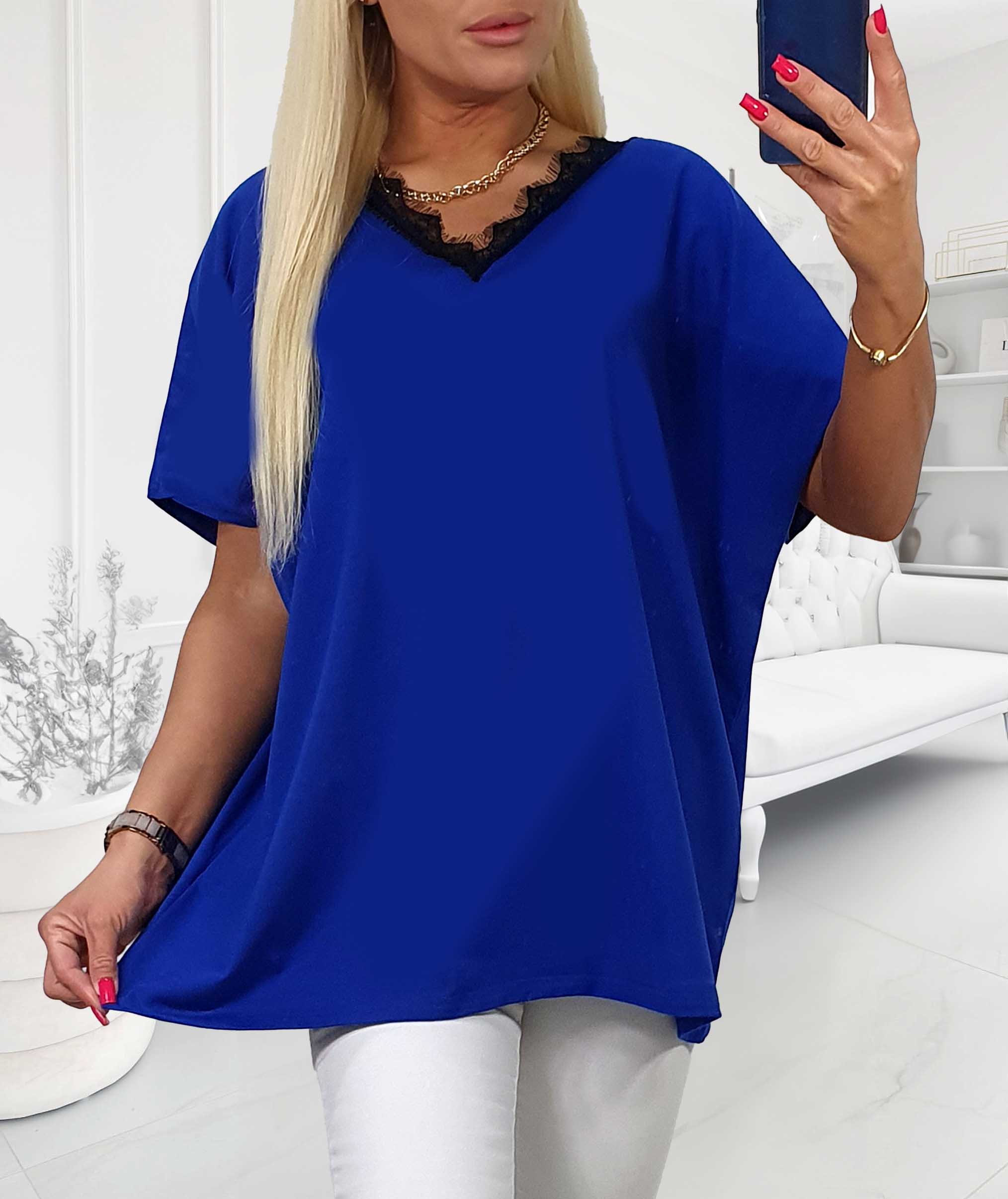NOVÁ! Bavlněná halenka s krajkou v dekoltu modrá - Jedna velikost