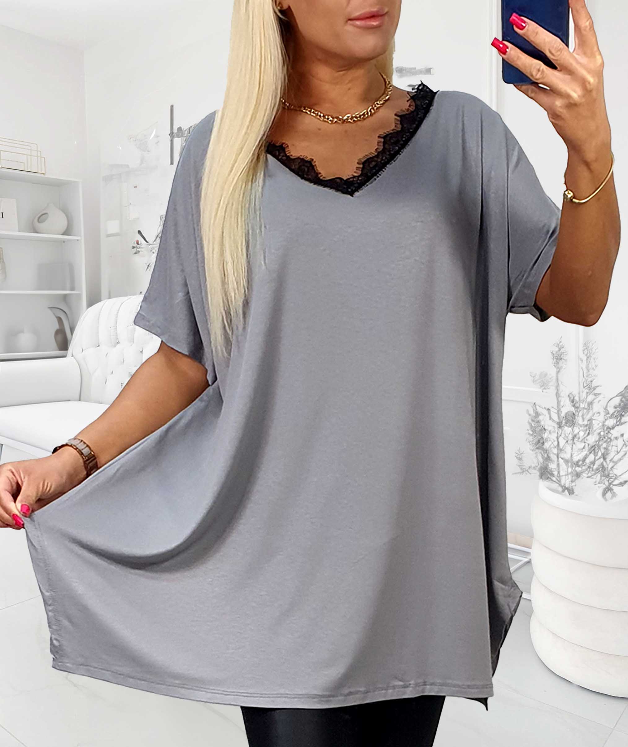 - NOVÁ! Tunika s krajkou v dekoltu šedá - Jedna velikost