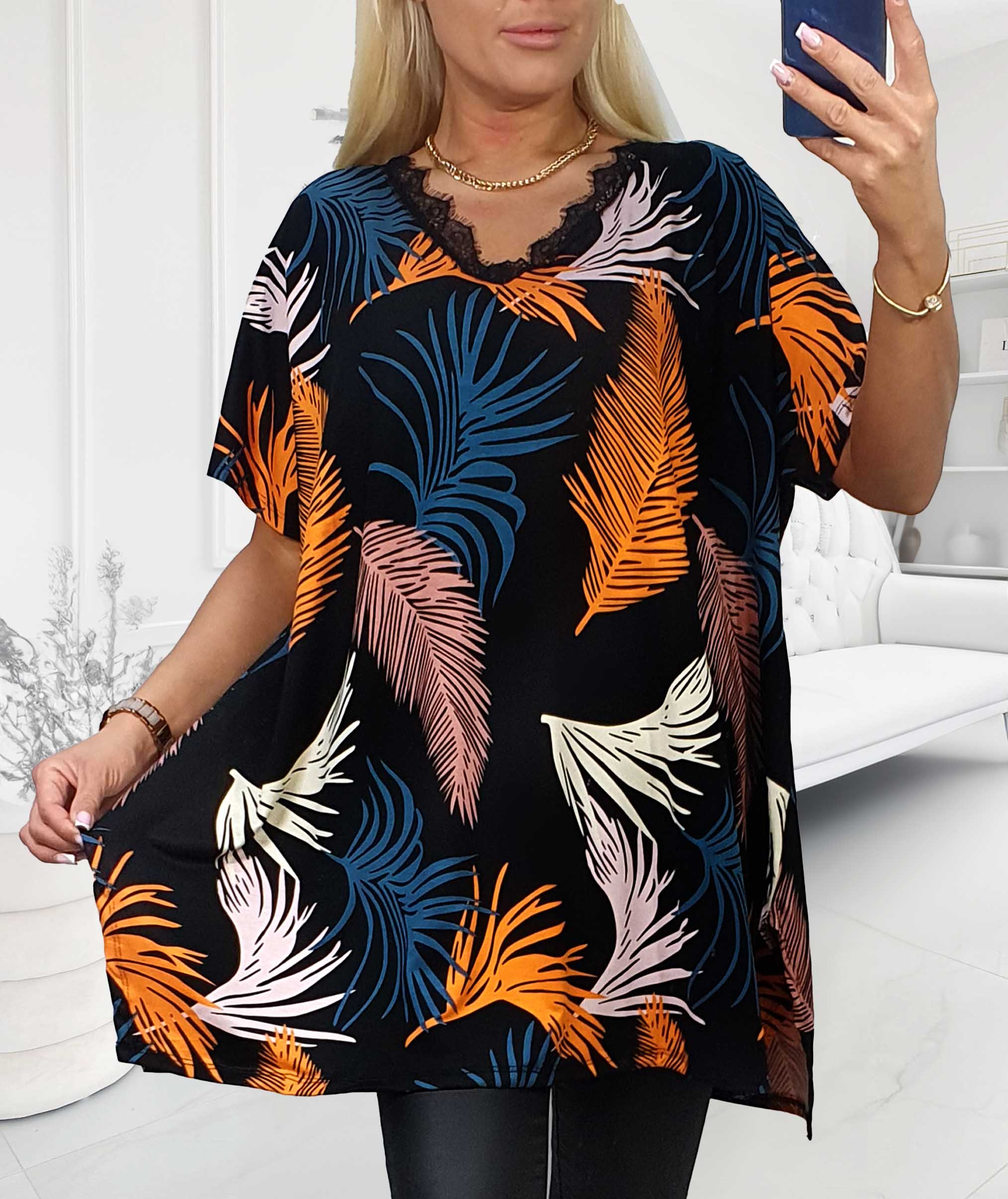 NOVÁ! Vzorovaná tunika s krajkou u krku DIGITAL - Jedna velikost