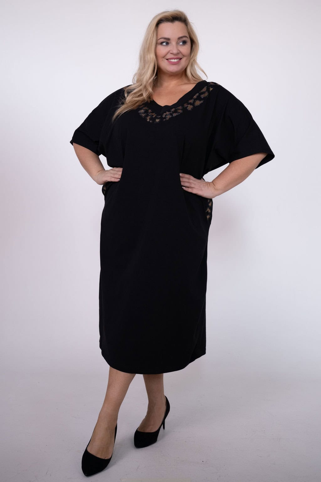 - NOVÉ! Bavlněné šaty zdobené kamínky / černá - Jedna velikost