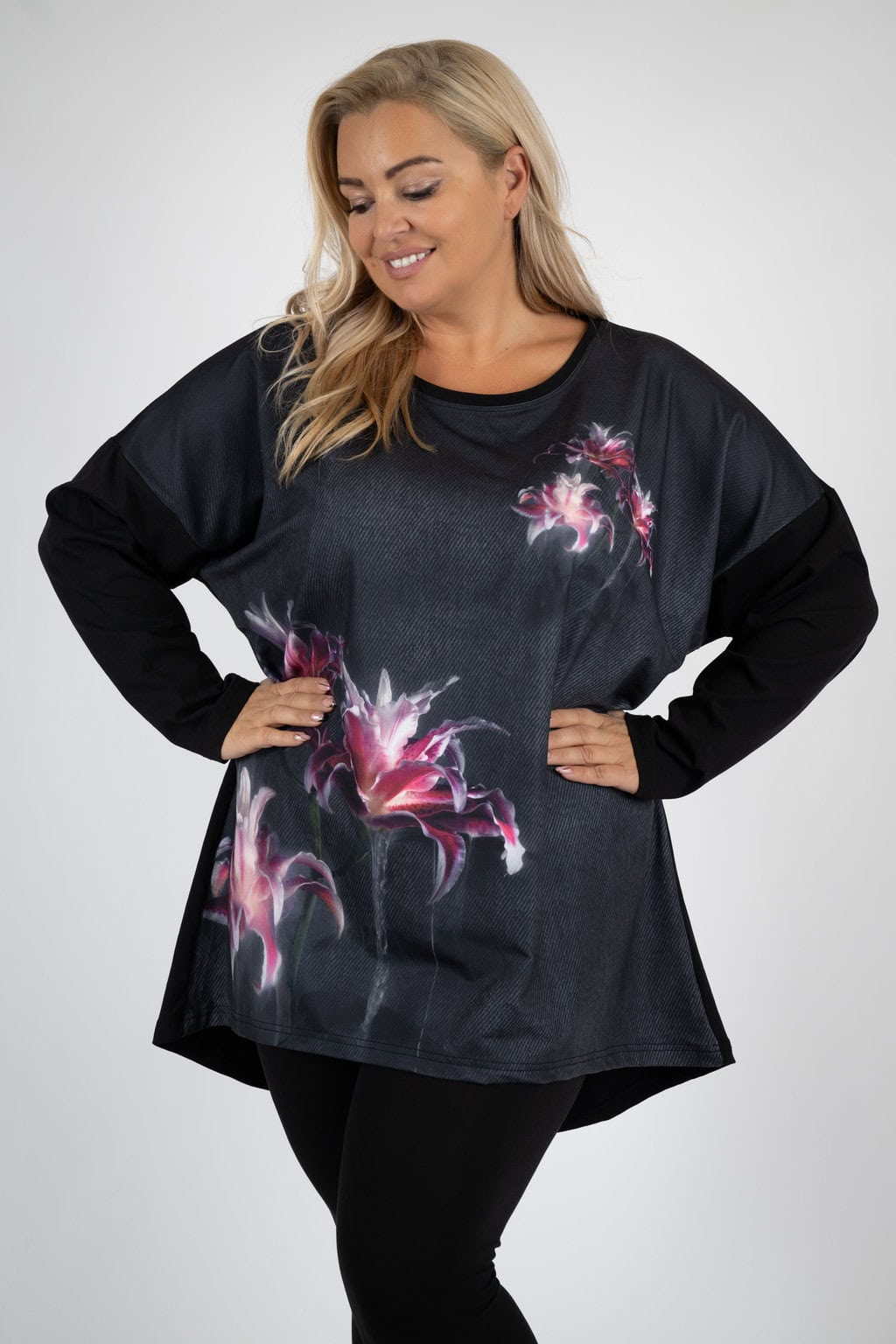 - NOVÁ! Halenka květy černá - Jedna velikost