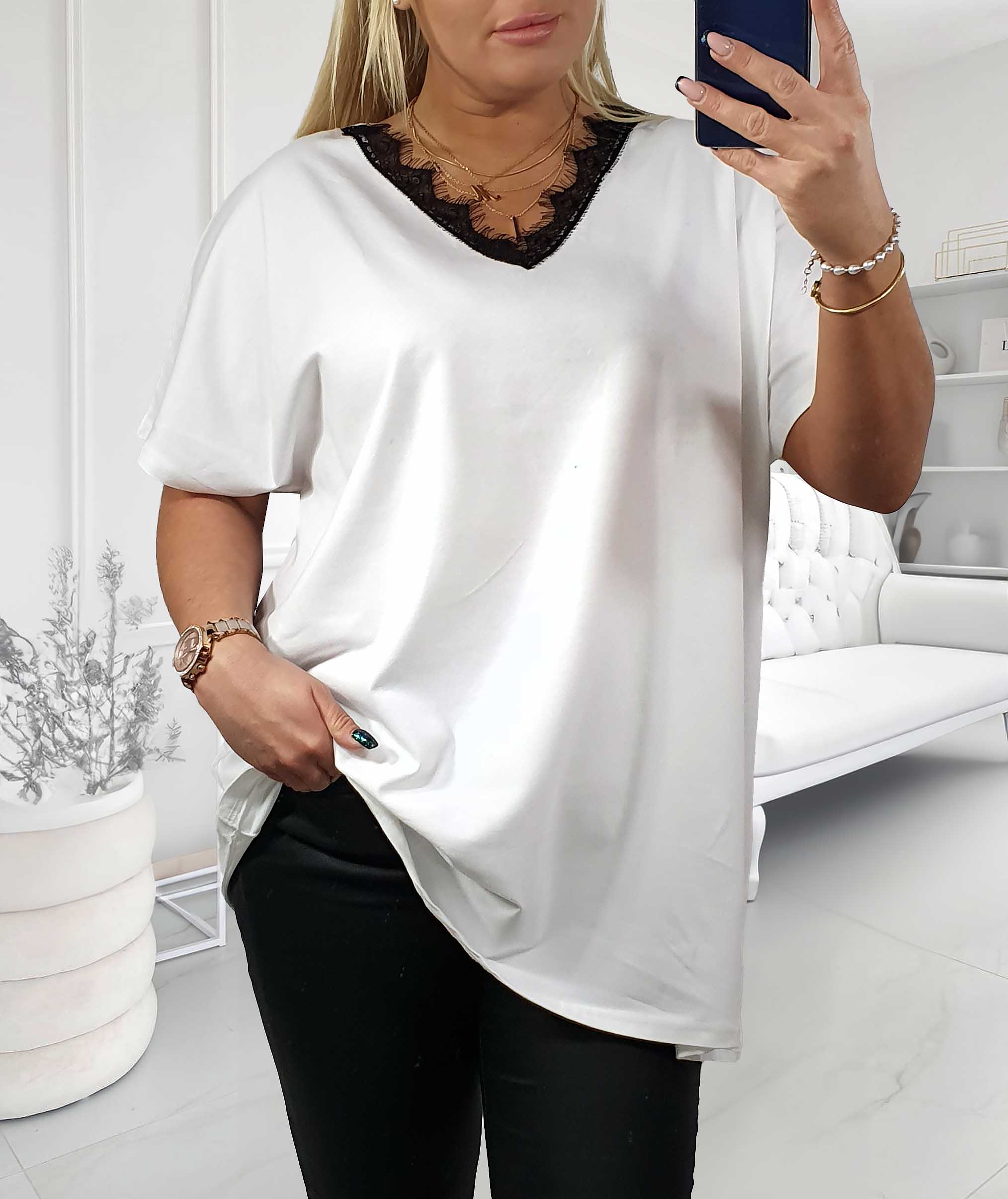 - NOVÁ! Bavlněná bílá halenka s krajkou v dekoltu - Jedna velikost