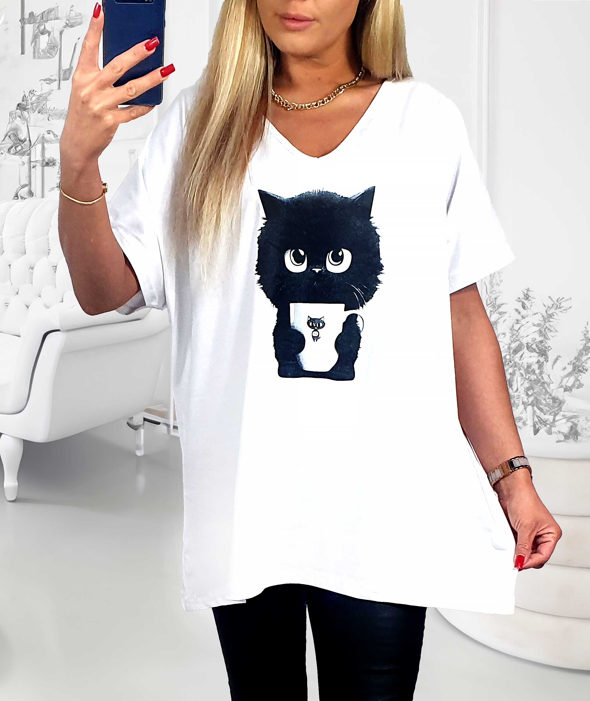 NOVÁ! Bavlněná halenka Kočka bílá - Jedna velikostSkladem 2 ks339 Kč/ ks
