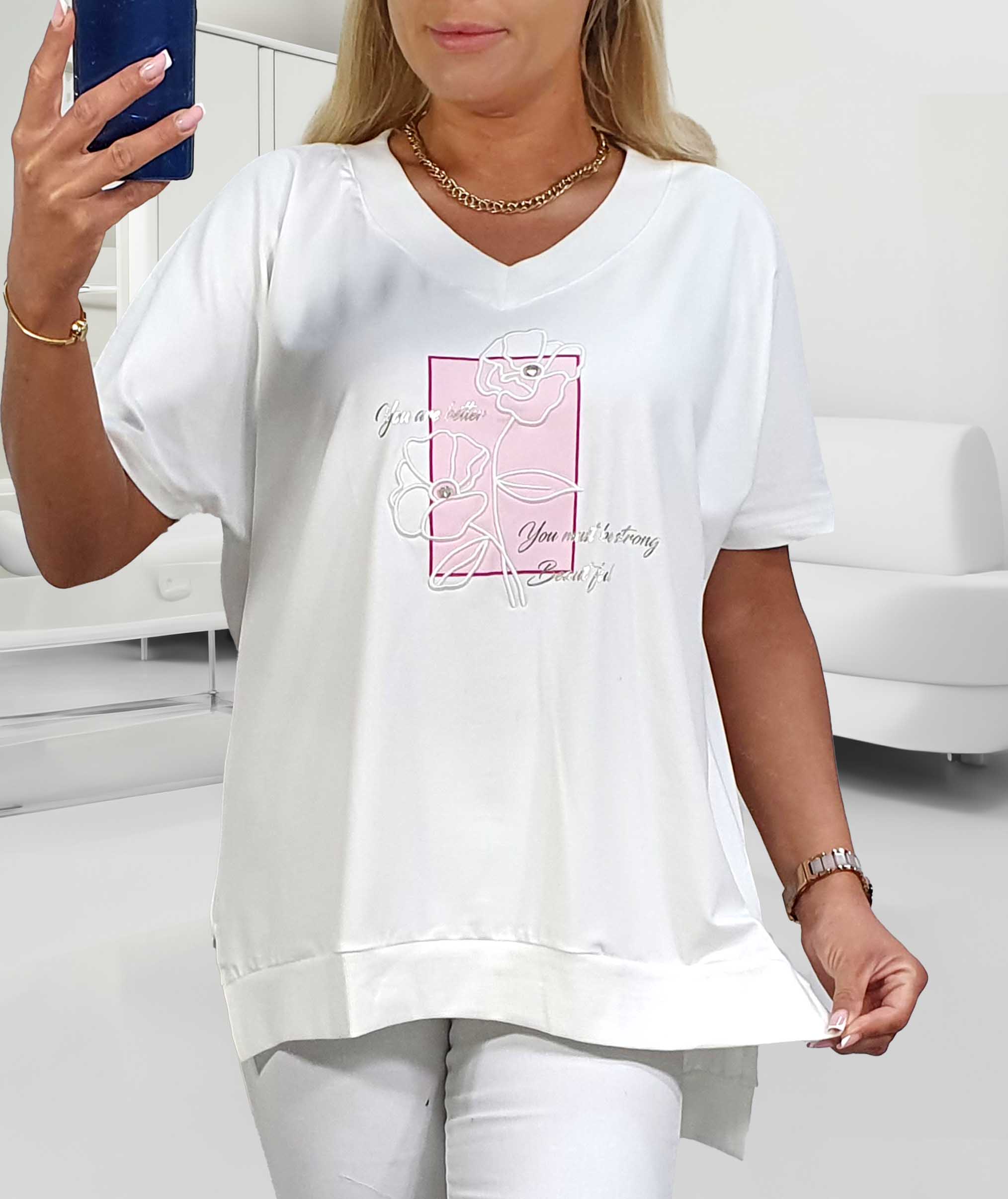 NOVÁ! Bílá tunika/halenka Rose MEGI / pudrová - XL