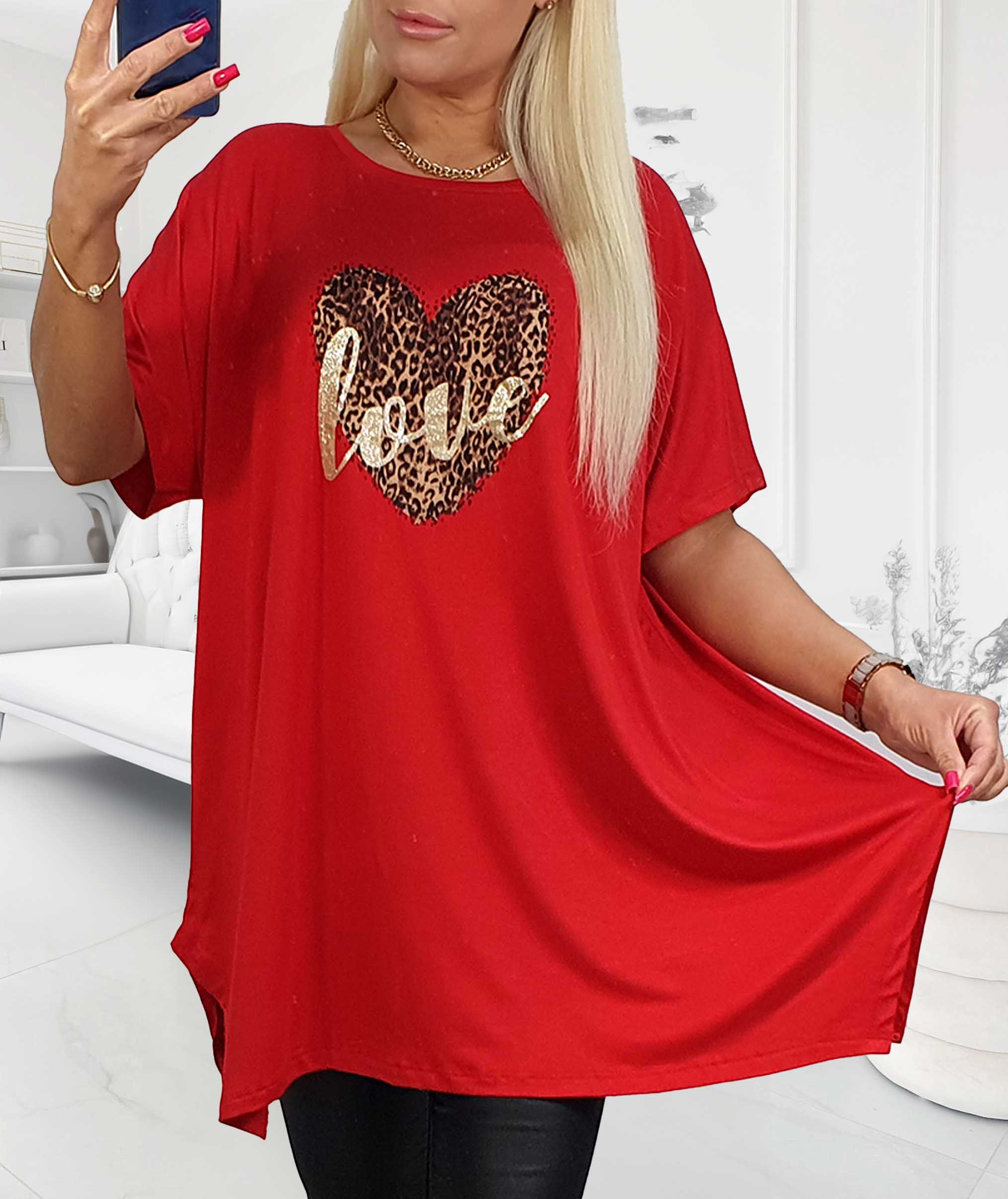 - NOVÁ! Tunika červená LOVE - Jedna velikost