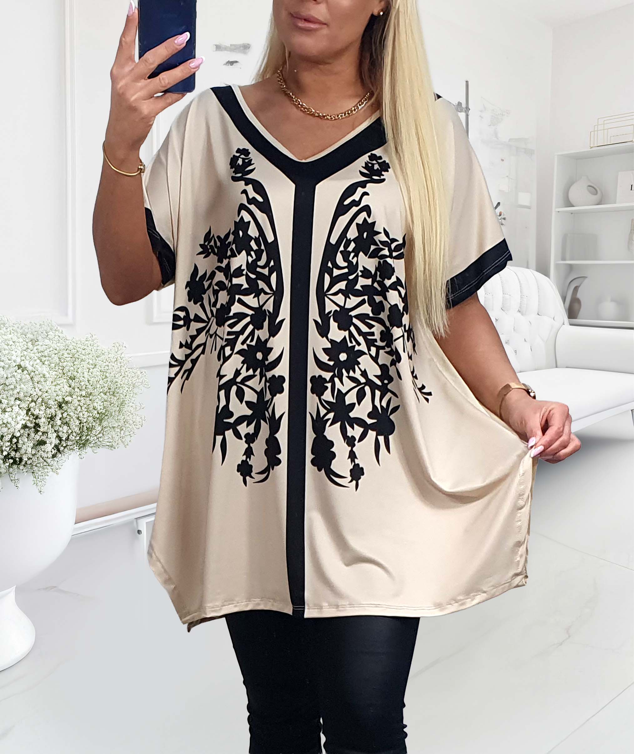 - NOVÁ! Vzorovaná tunika béžová - Jedna velikost