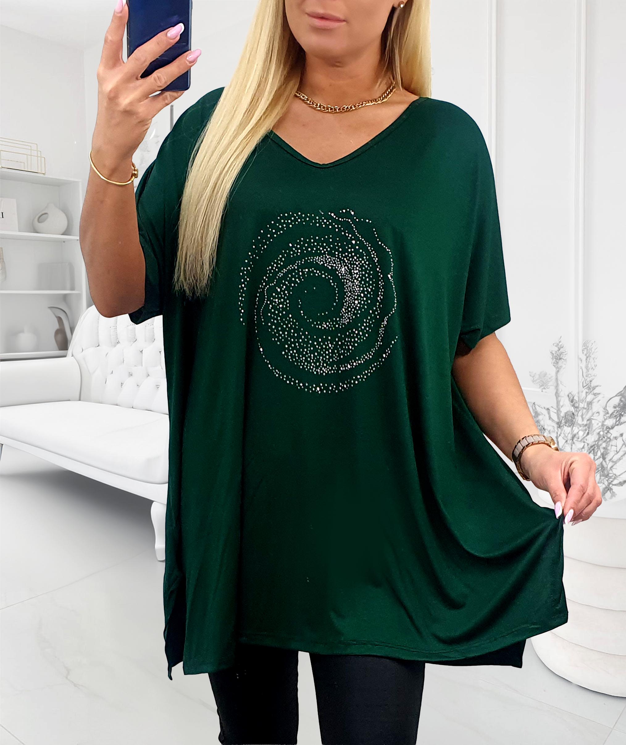 - NOVÁ! Zelená tunika / Zdobená kamínky - Jedna velikost