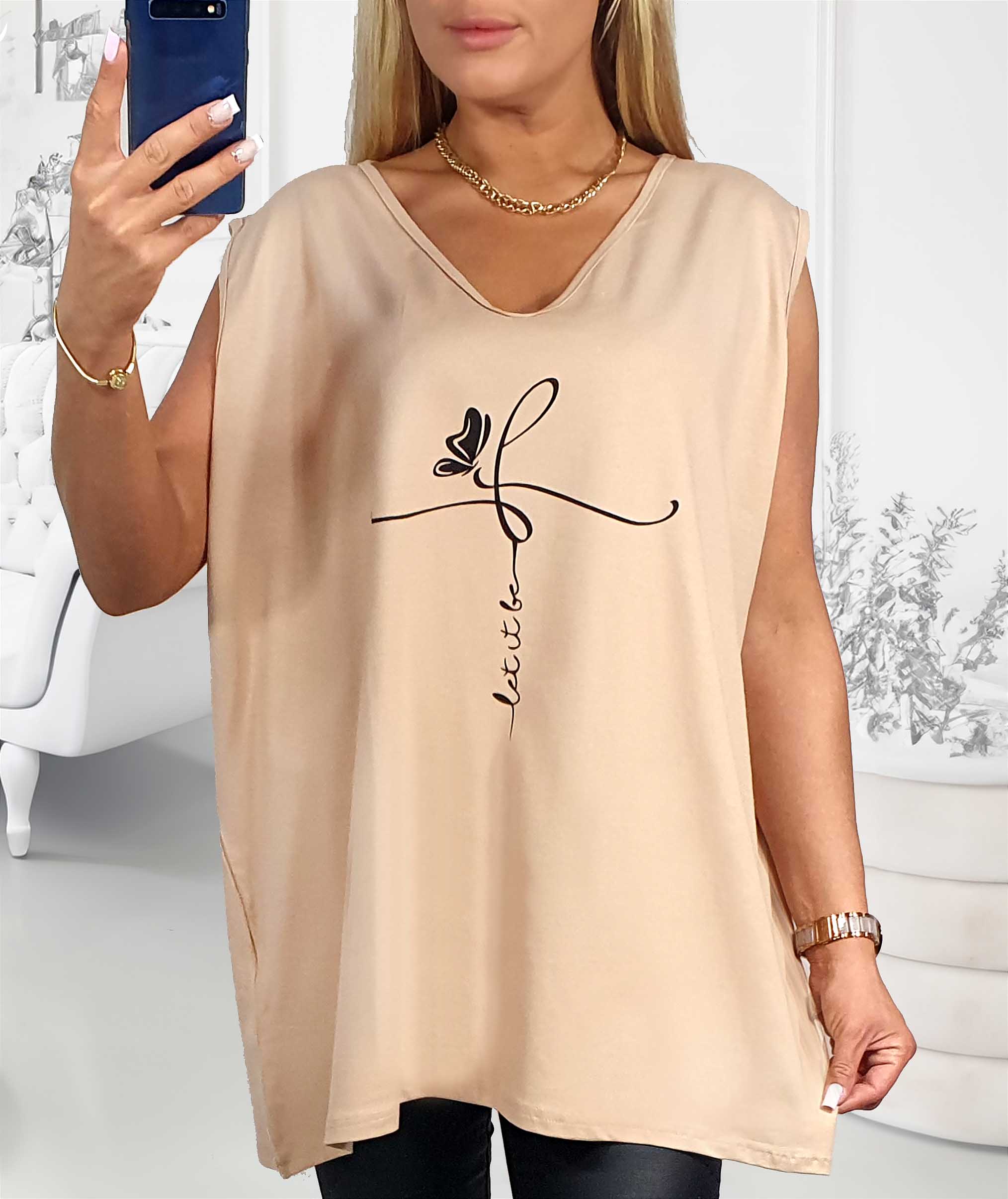 - NOVÝ! Béžový top s potiskem - Jedna velikost