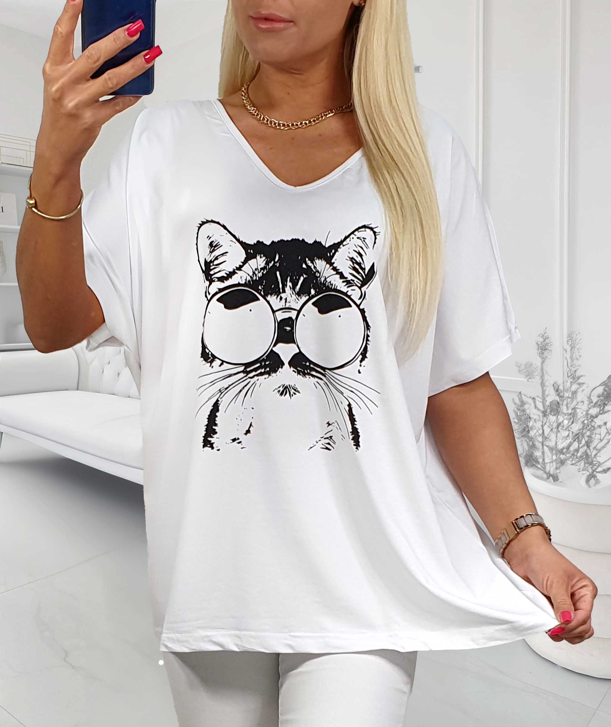 - NOVÁ! Bavlněná tunika/triko DIGITAL kočka bílá - Jedna velikost