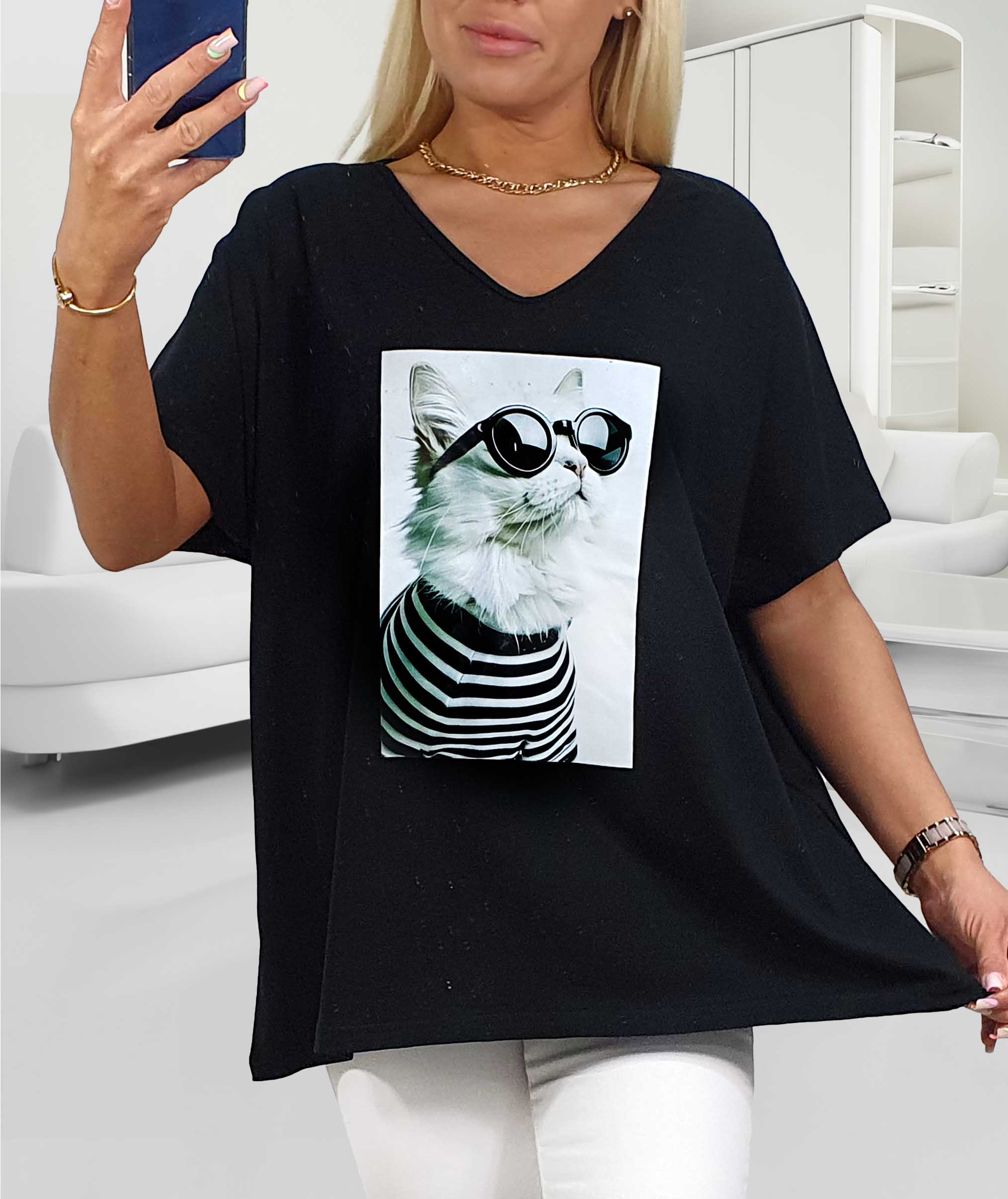 NOVÉ! Bavlněné tričko Kočka / černá- Jedna velikostSkladem 2 ks349 Kč/ ks