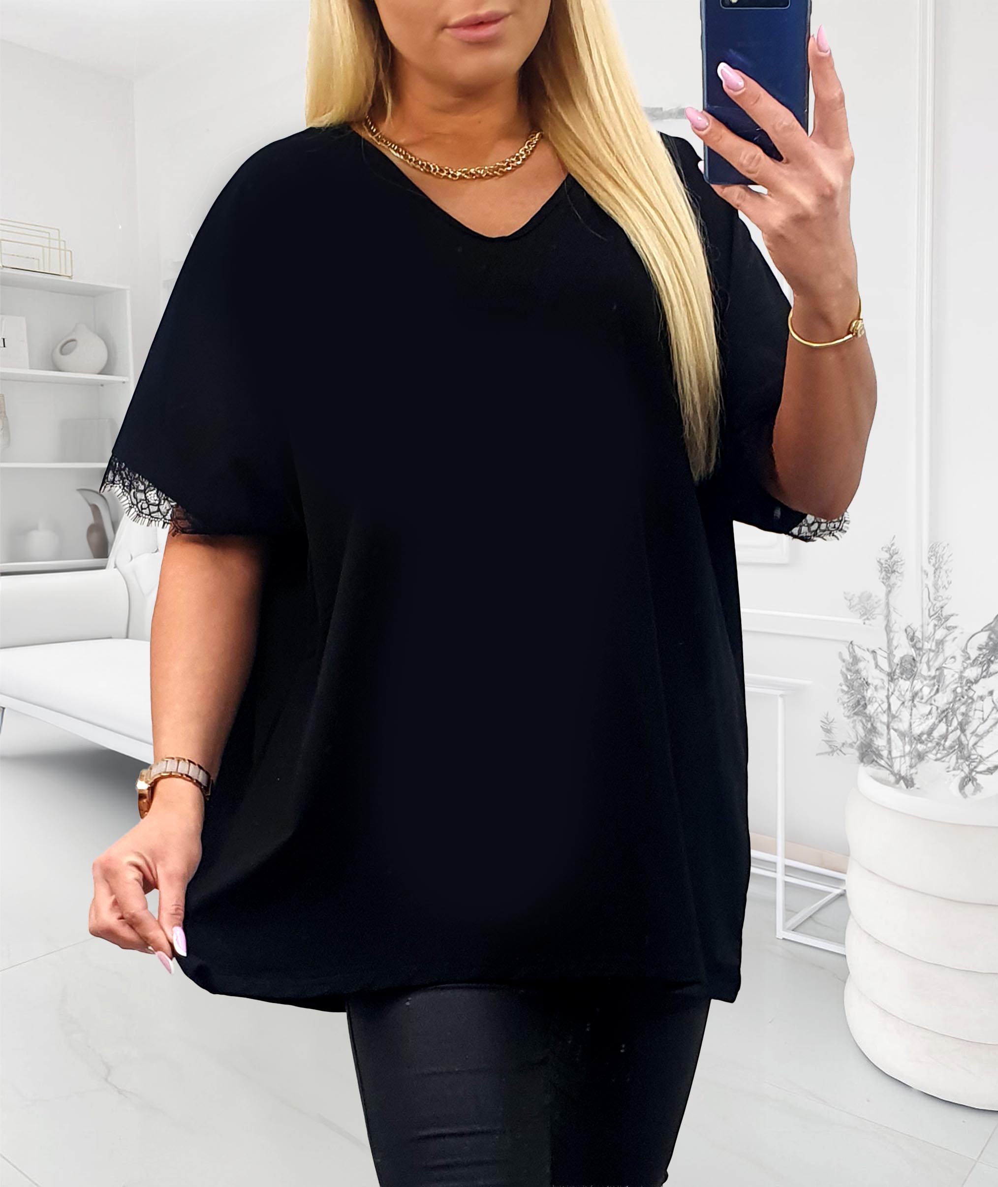 - NOVÁ! Tunika/halenka s krajkou na rukávech černá - Jedna velikost